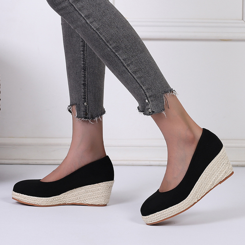 Wongn Wongn And Autumn Slope With Thick Bottom High Heel Round Head Shallow Single Shoes Women Grass Hemp Rope Bottom