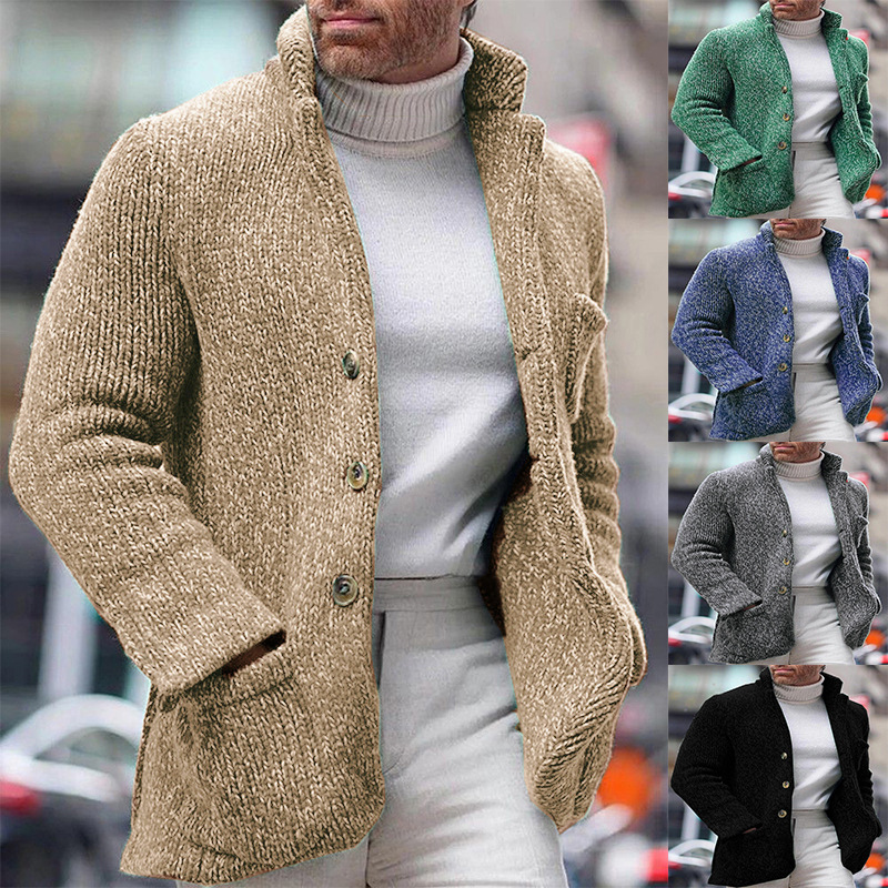 Wongn Wongn And Winter New Men's Knit Cardigan Stand Collar Long Sleeve Single Breasted Pocket Cardigan Casual Men's Jacket