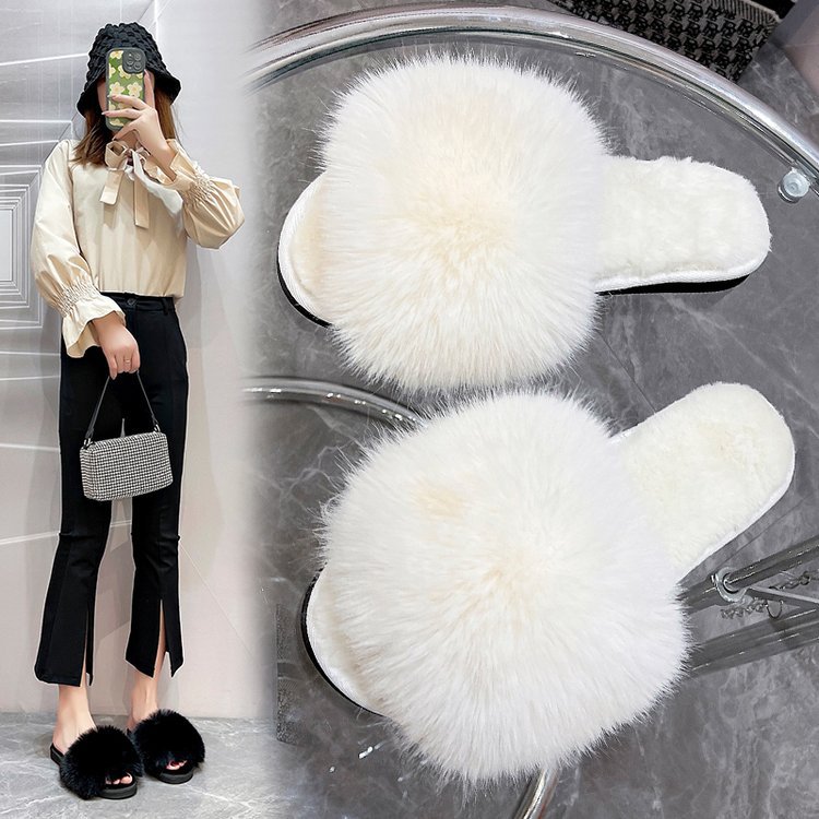Wongn Wongn Autumn And Winter New Wool Slippers Fashion One-Line Home Indoor Cotton Slippers Women's Shoes