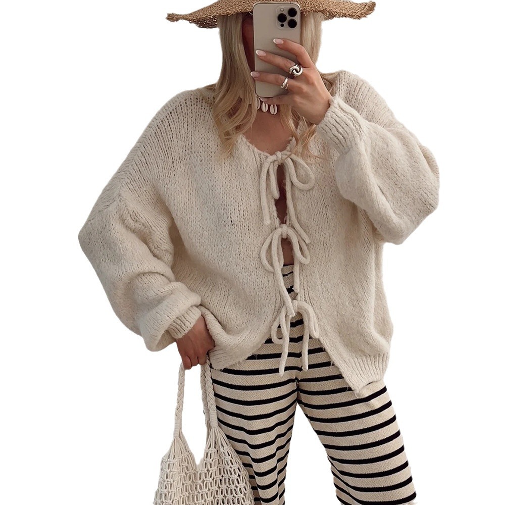 Wongn Wongn Autumn Winter New Round Collar Long Sleeve Top Pink Lace Sweater Lazy Wind Women's Cardigan Top