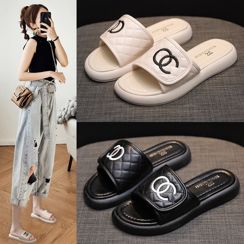 Wongn Wongn Celebrity Small Fragrant Wind Slippers Female Wear 2023 Summer New Versatile Flat Beach Sandals Out Leisure Generation