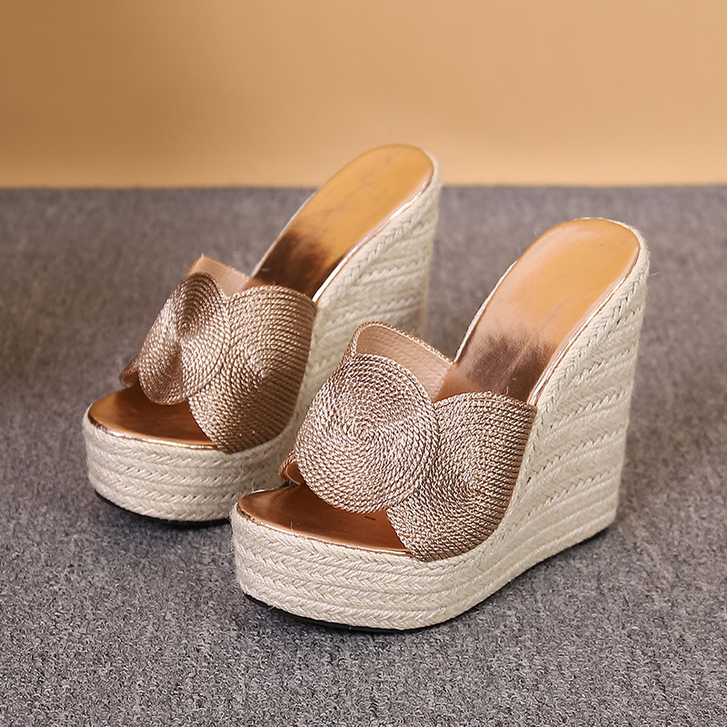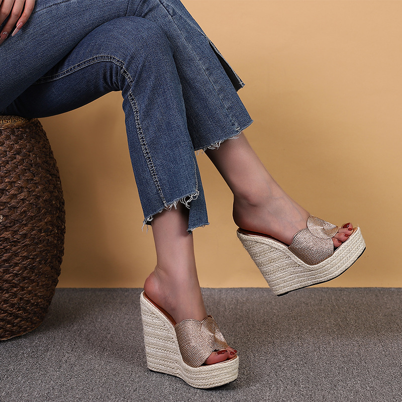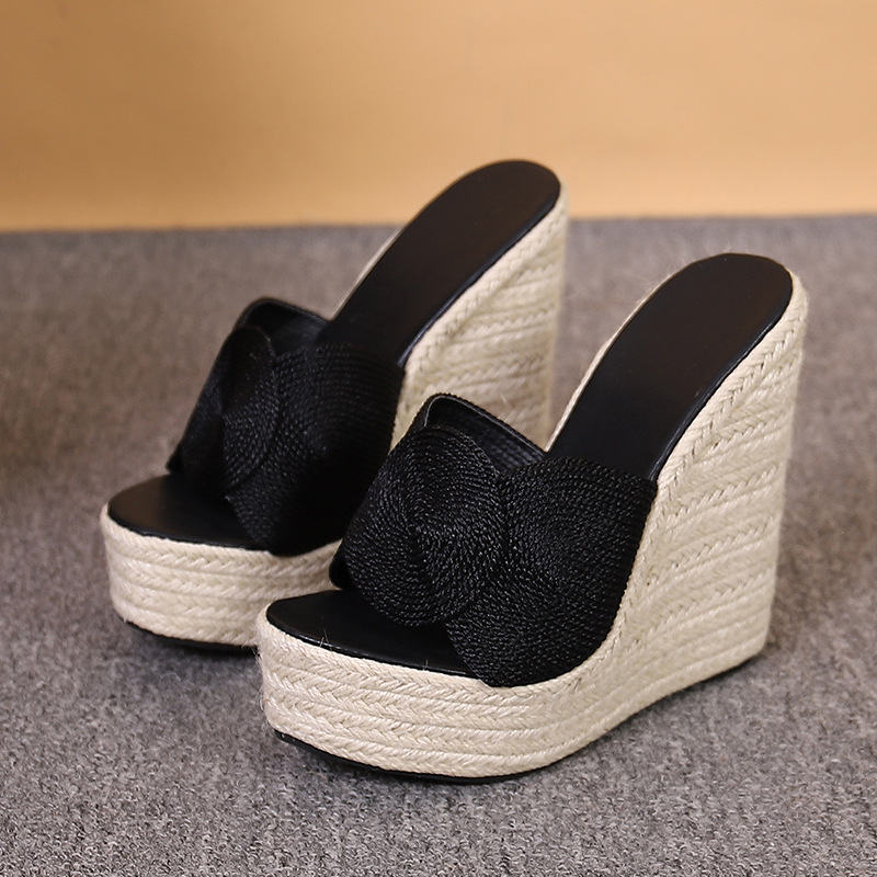 Wongn Wongn Cm Hate Sky High Slope With Thick Bottom High Heel Slippers Show Fashion Women's Shoes Straw Hemp Rope Bottom
