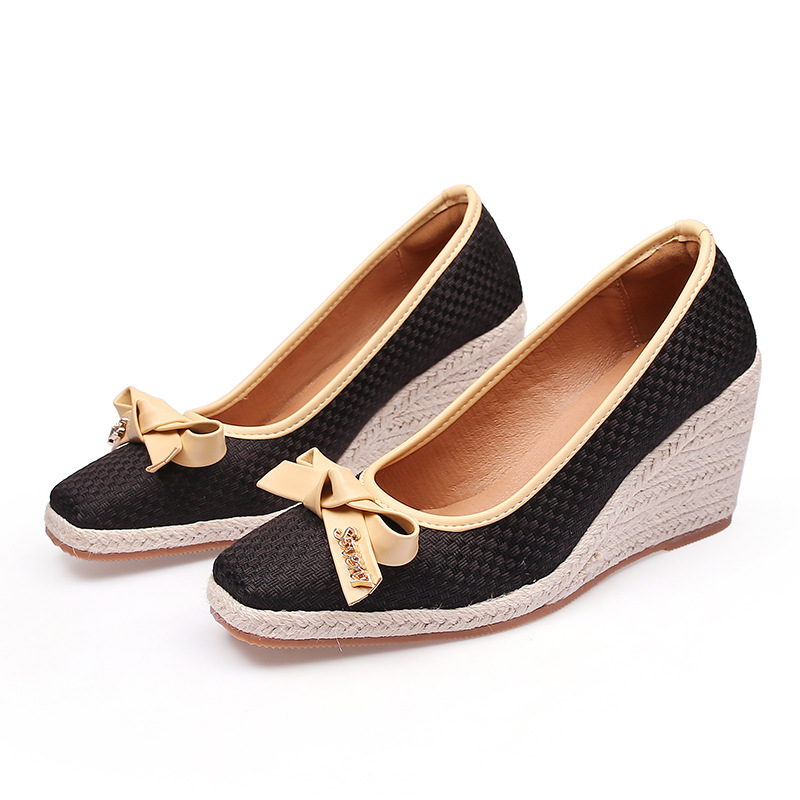 Wongn Wongn Grass Single Shoes Female New Spring And Autumn Shallow Mouth High Heel Thick Bow Women's Shoes