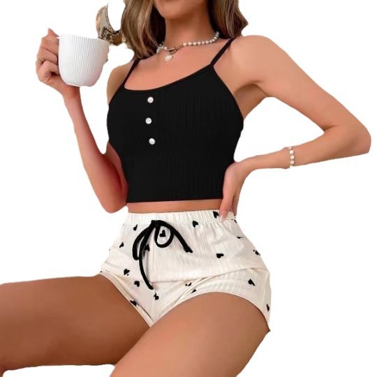 Wongn Wongn Ins Korean Wind Contrast Color Sling Pajamas Female 2024 Summer New Casual Vest Shorts Home Clothes Two Sets