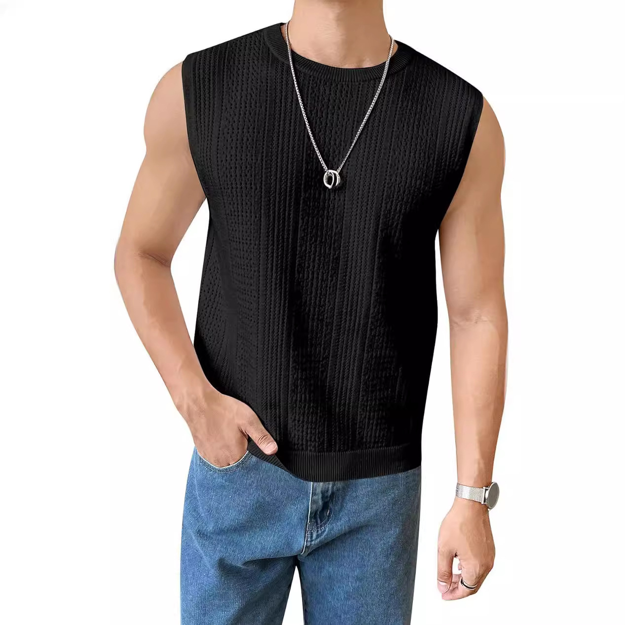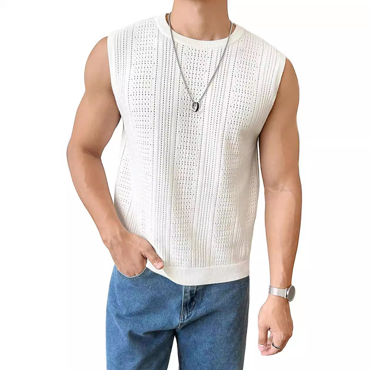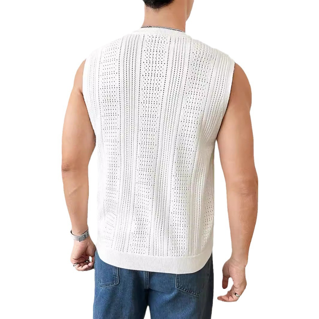 Wongn Wongn Men's New Solid Color Sweater Fashion Men's Sleeveless Jacket Hollow Out Breathable Round Collar Recreational Vest