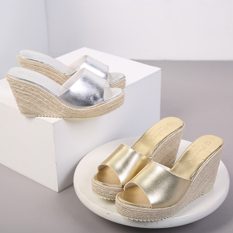 Wongn Wongn New Cool Drag Summer Fashion Outside Wear Shoes Female Thick With Hemp Rope Versatile Flip-Flops Slope With Thick Bottom High Heel Korean Version