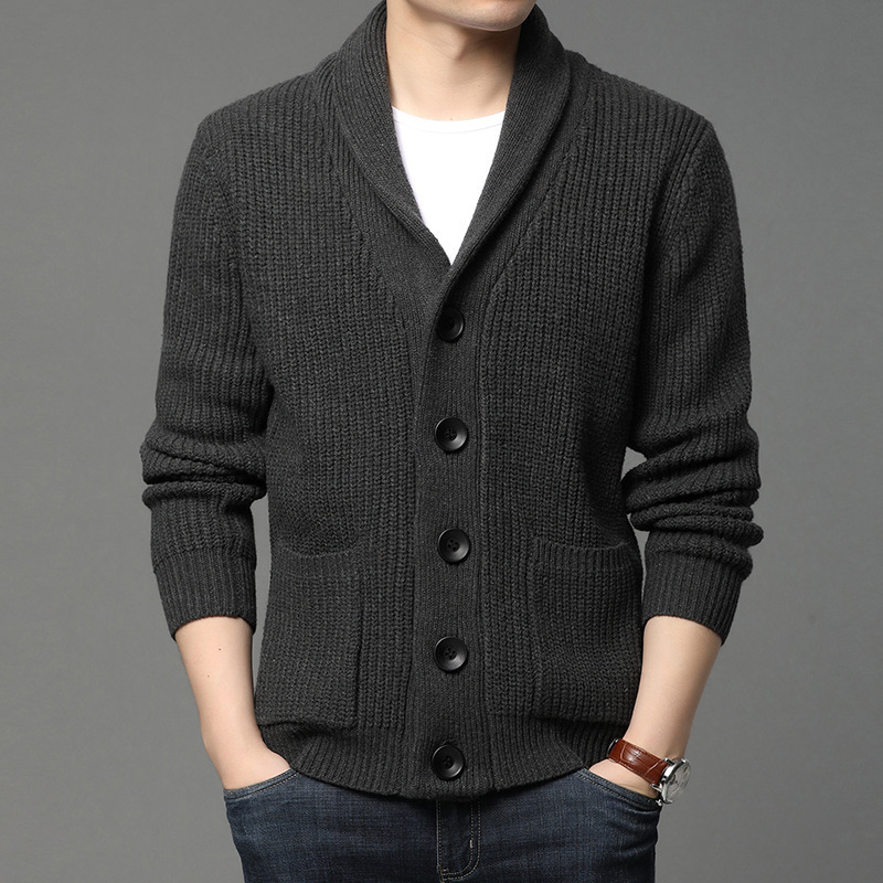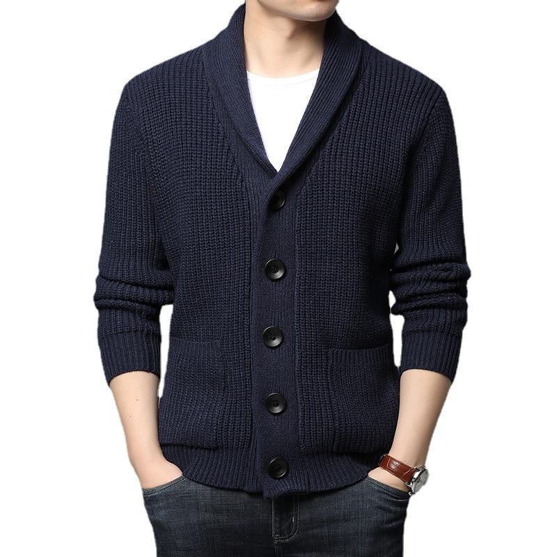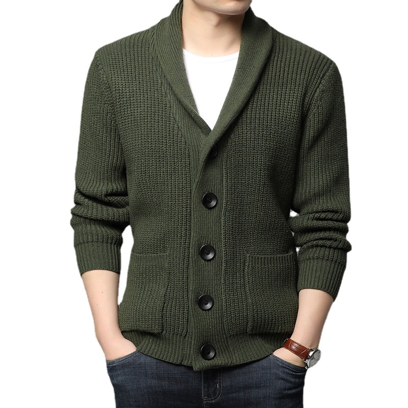 Wongn Wongn New Men's Long Sleeve Sweater Cardigan Pocket Turtleneck Solid Color Sweater Men's Wear