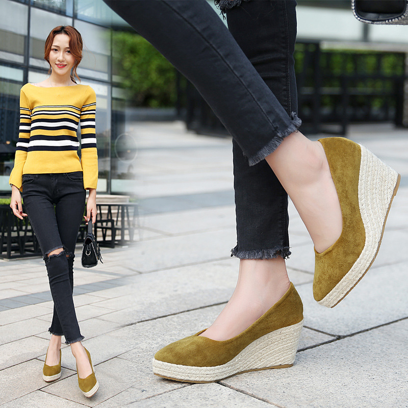 Wongn Wongn New Wedge Wedge Single Shoes Women's Shallow Pointed Thick Grass Woven High Heel Women's Shoes Thick Heel
