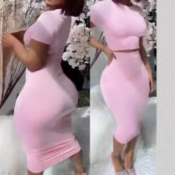 Wongn Wongn Round Neck Short Sleeve Show Waist Sexy T-Shirt Wrapped Buttock Skirt Set