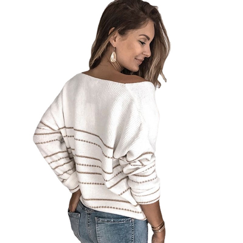 Wongn Wongn Seller Fall / Winter 2023 Patchwork Knit Ebay Striped V-Neck Sweater Top Women