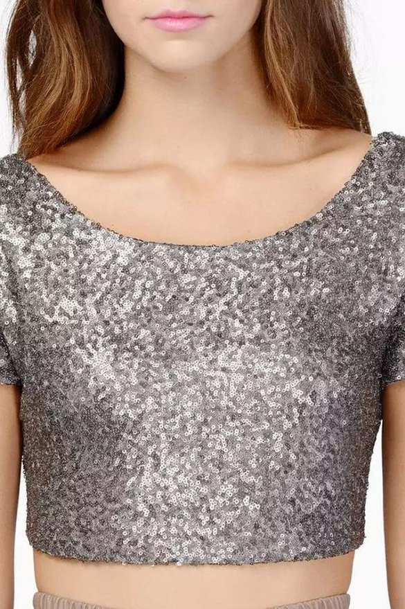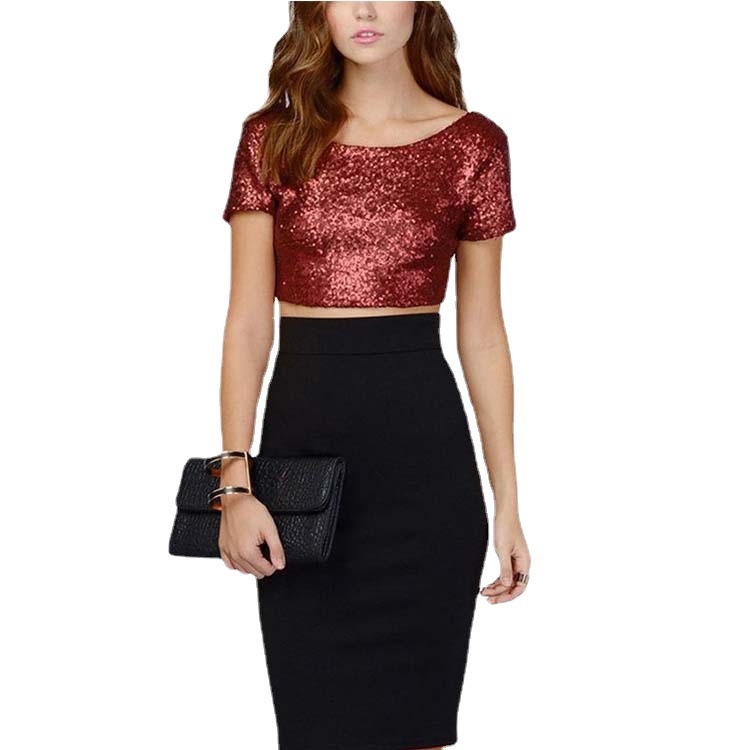 Wongn Wongn Sequin Top Ebay Sexy Back Crop Top Women's T-Shirt Short Sleeves