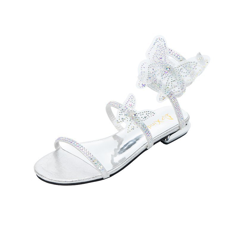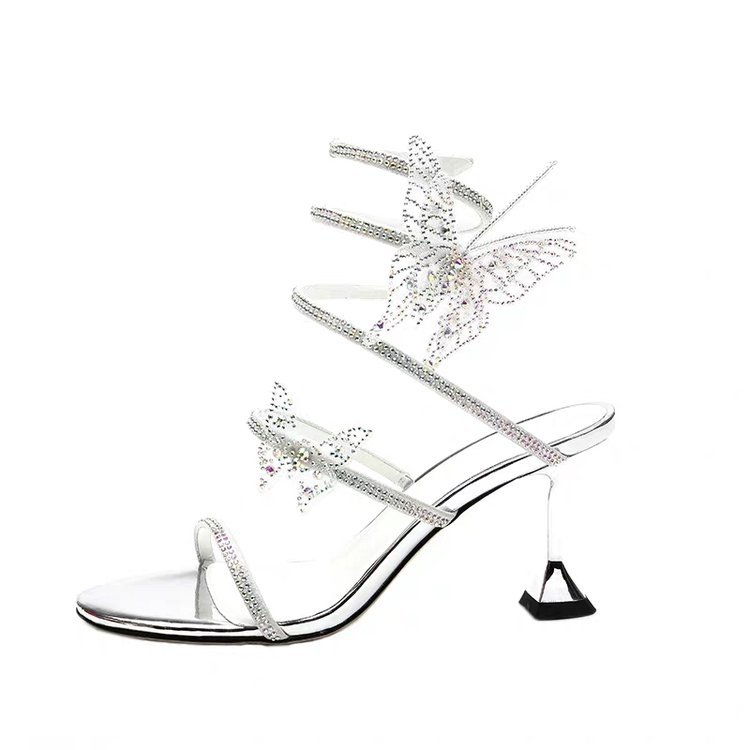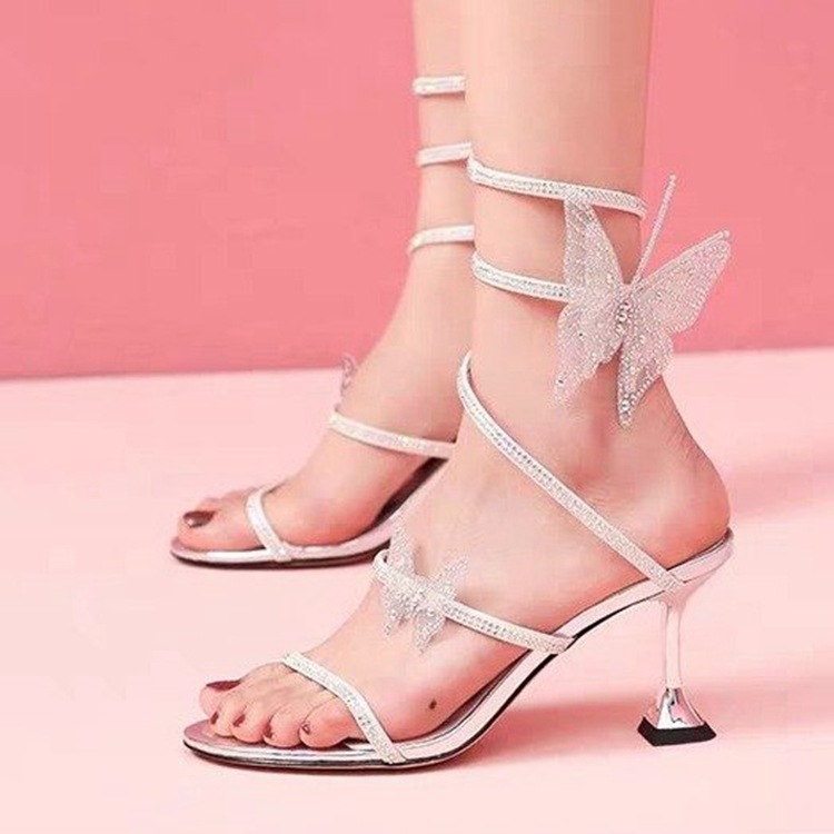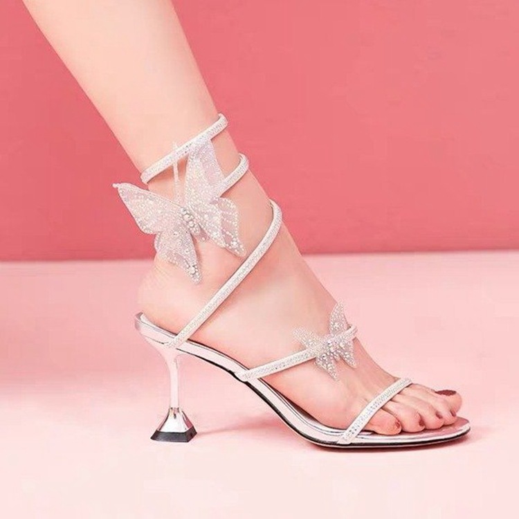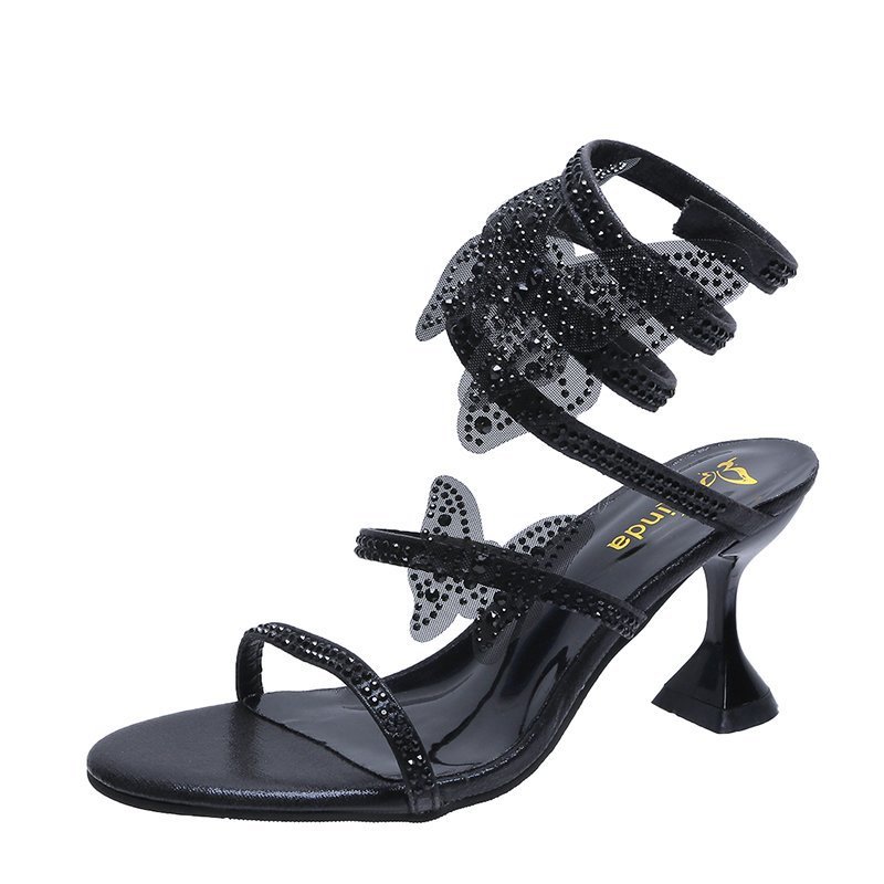 Wongn Wongn Shape Winding Water Diamond Sandal Female 2023 New One Word With Fine Heel Roman Sandals Fashion Net Red Fairy Wind Shoes
