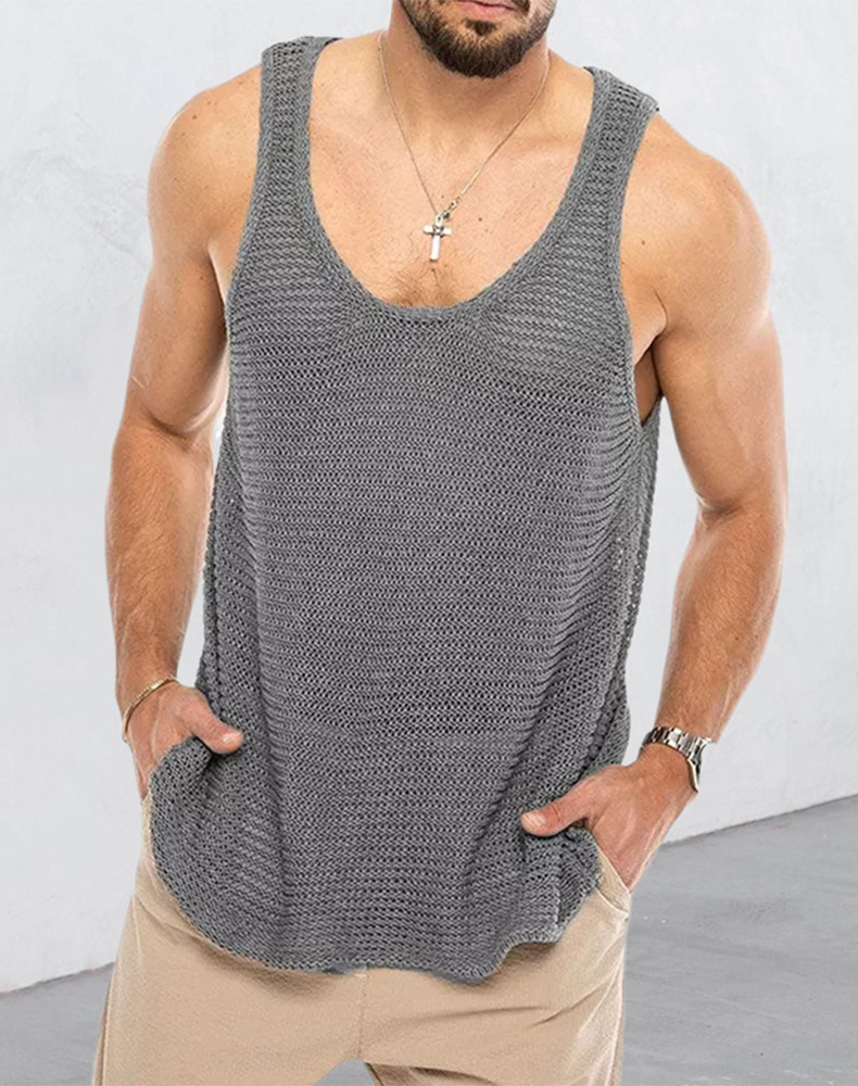 Wongn Wongn Spring And Summer Men's Casual Top Tank Top Sleeveless Knit Pure Color Men's Sweater Vest