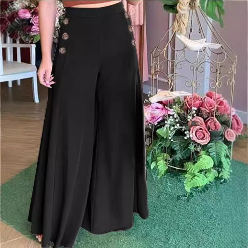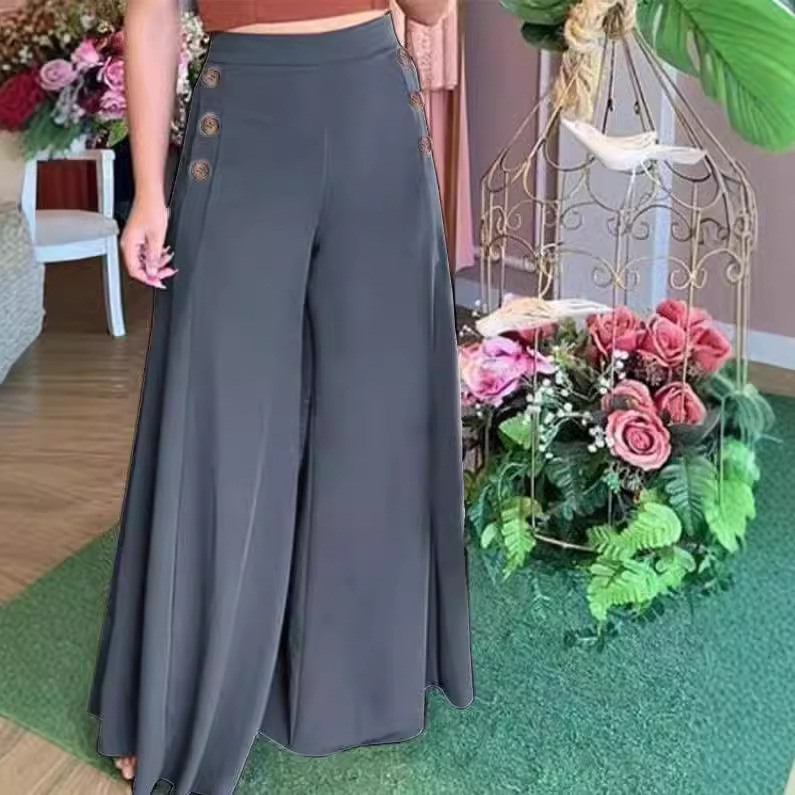 Wongn Wongn Spring / Summer 2023 Pants Women's Button Elastic High Waist Summer Wide Leg Pants