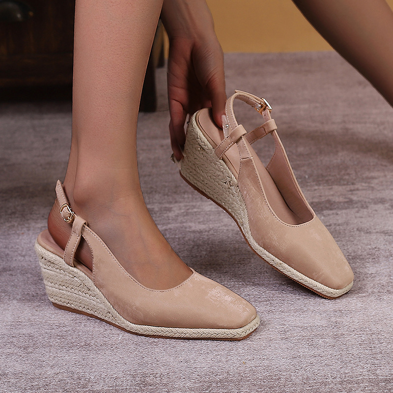 Wongn Wongn Square Head Thick Bottom High Heel Head Drag Straw Hemp Bottom One-Line Women's Single Shoes