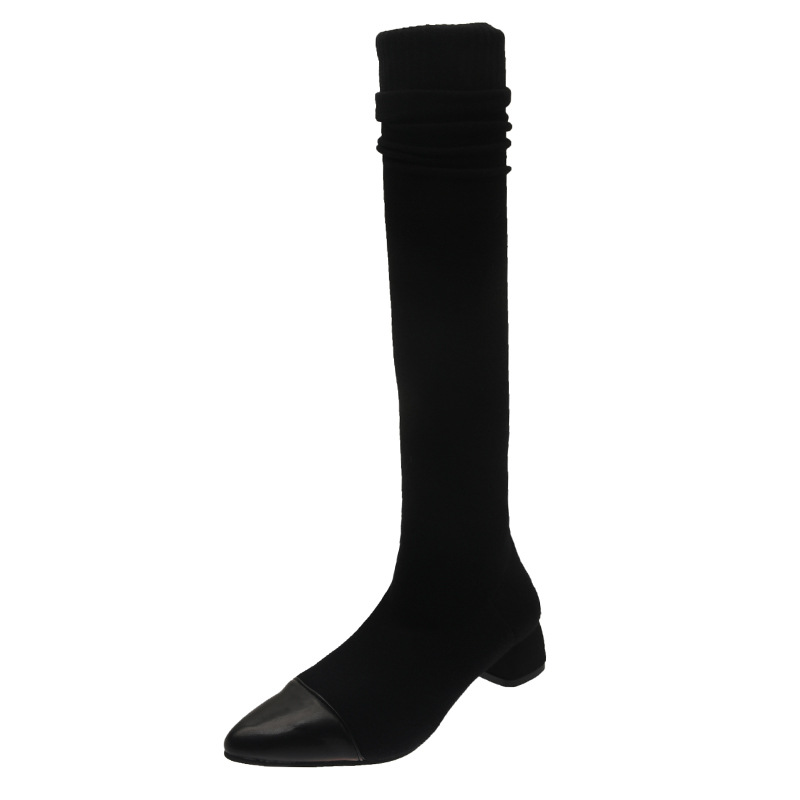 Wongn Wongn Stockings Boots Pointed Thin Boots Women Long Tube Knitting Wool Elastic Socks Boots Thick Heel High Heels Over The Knee Boots Women