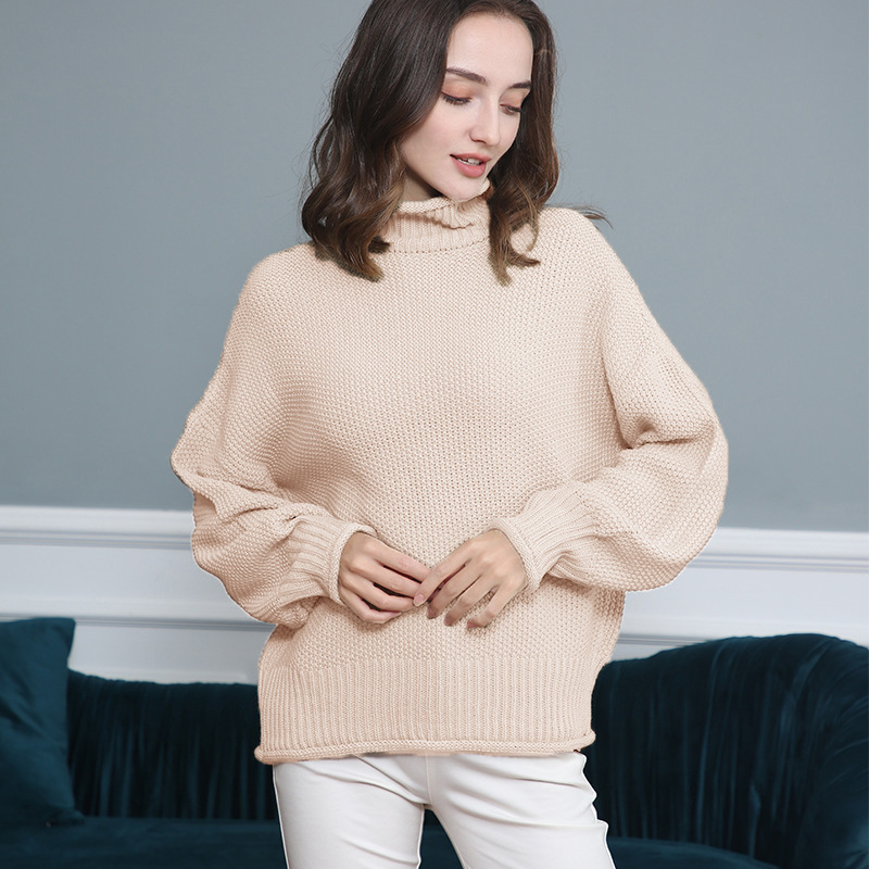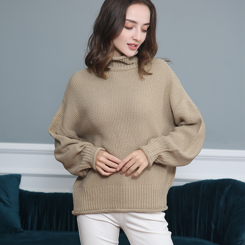 Wongn Wongn Style Women's Sweater Fashion Casual Women's Long Sleeve High Collar Pure Color Knit Pullover
