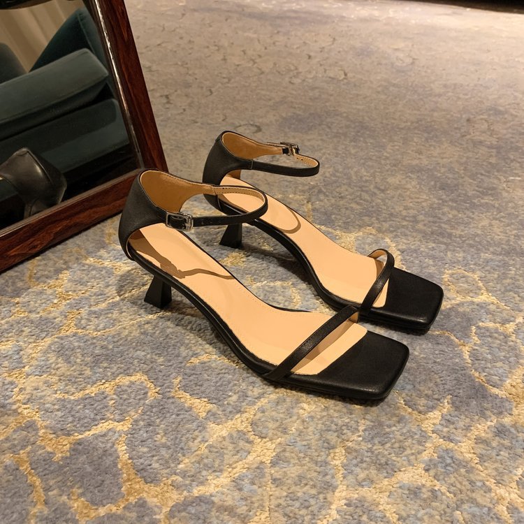 Wongn Wongn Summer New Fashion Korean Version Simple One-Line Buckle High Heel Sandal Fine Heel Women's Shoes