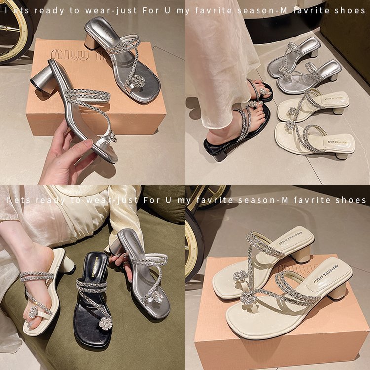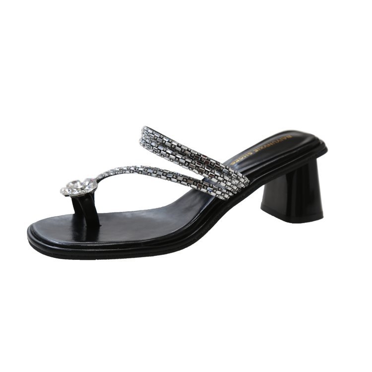 Wongn Wongn Summer New Fashion Rhinestone Flowers With Thick Heel Cool Drag High Heel Slippers Women's Shoes