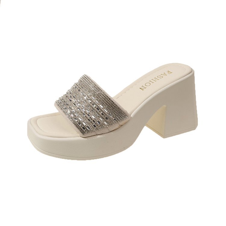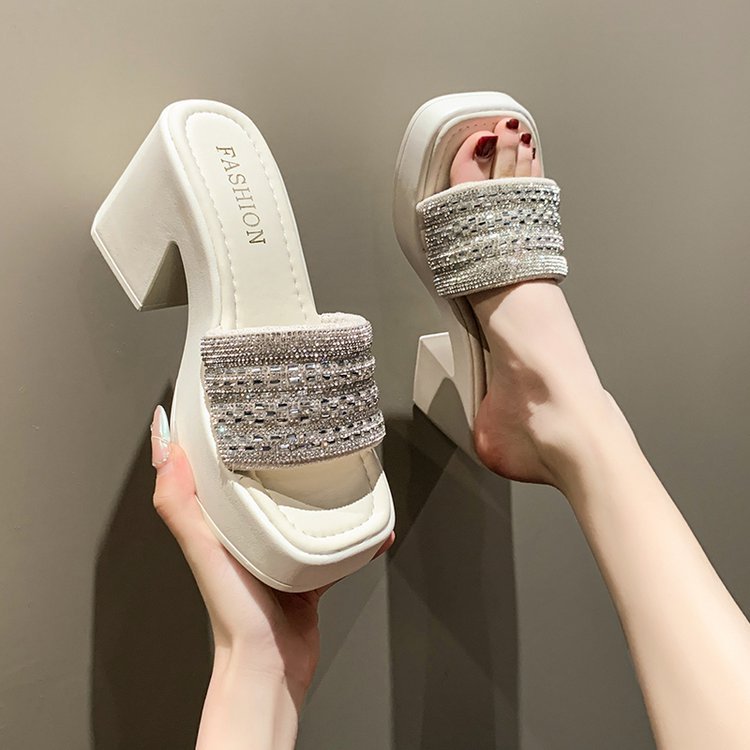 Wongn Wongn Summer New Fashion Women's Shoes Water Diamond One-Word Waterproof Platform Thick With Cool Drag High Heel Slippers Female