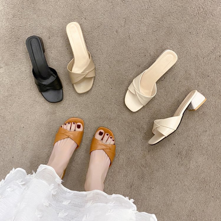 Wongn Wongn Summer New Women's Shoes Fashion Pleated One-Word Outside Wear With Cool Drag Thick With Slippers Large Size