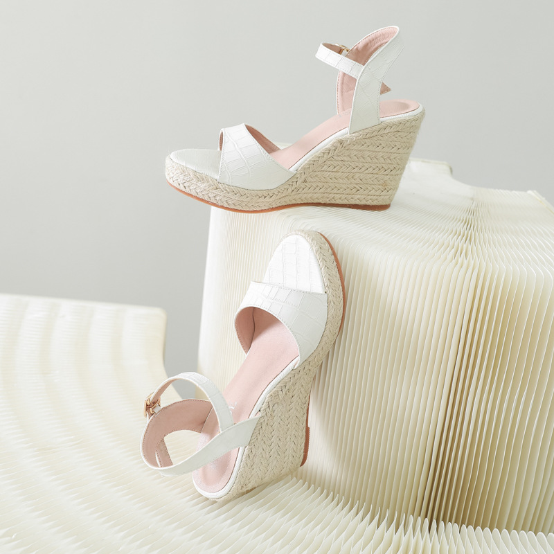 Wongn Wongn Summer Wedge Platform High Heel Sandals Straw Hemp Rope Large-Size Shoes
