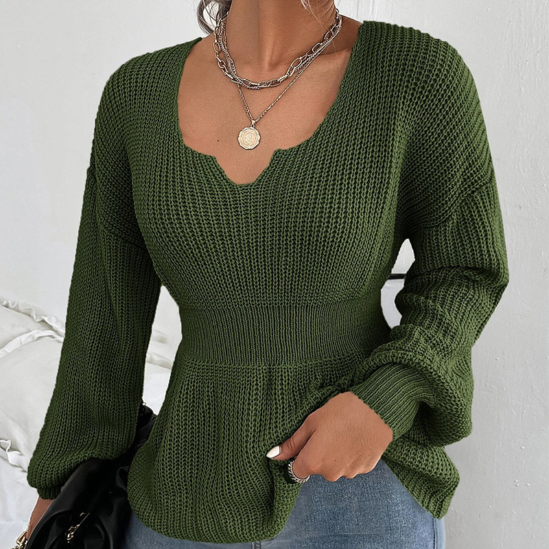 Wongn Wongn Sweater Women's Fashion V-Neck Jumper Solid Color Long Sleeve Flounces Closed Waist Women's Shirt