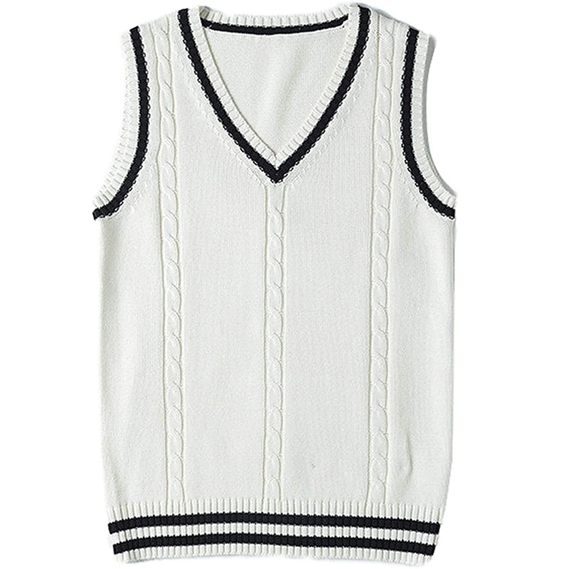 Wongn Wongn Sweater Women's Vest V-Neck Striped Stitching Casual Knit Vest Jumper
