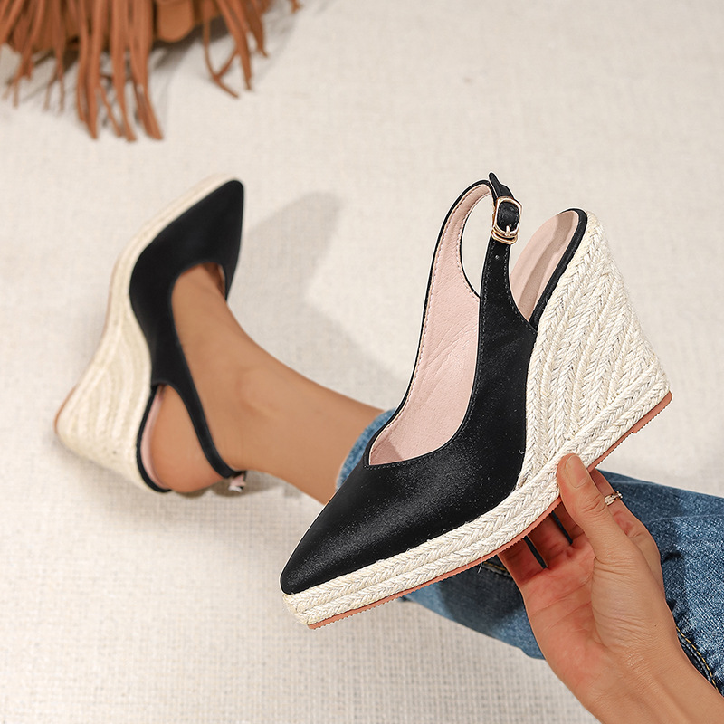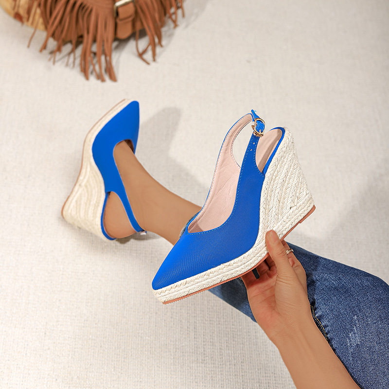 Wongn Wongn Thick Bottom High Heel Pointed Head Drag Women's Shoes After Empty Buckle Straw Hemp Rope Bottom