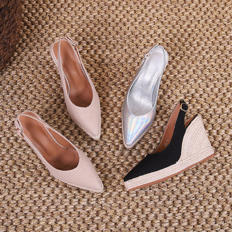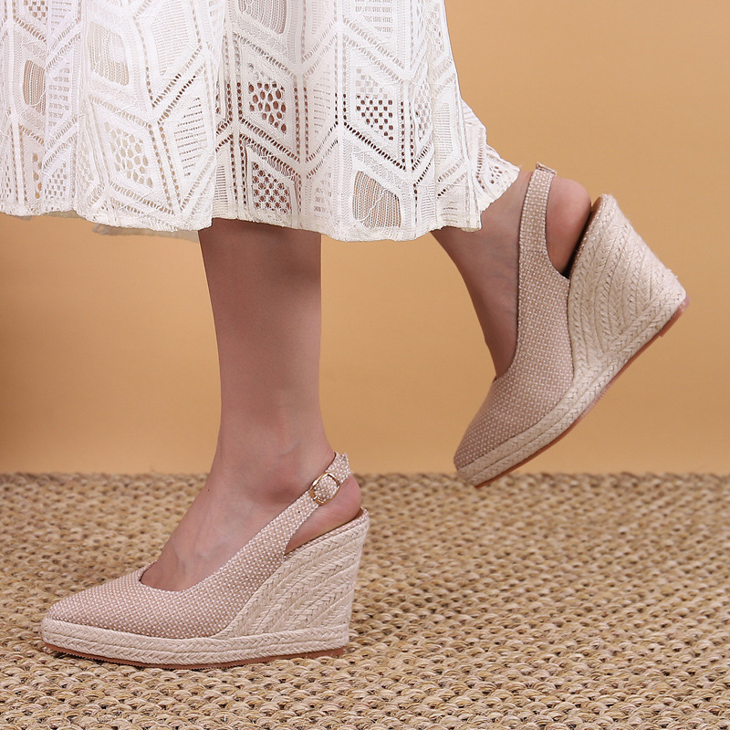 Wongn Wongn Wedge Heel Pointed Head Thick Bottom High Heel Head Drag Single Shoes Women's Straw Hemp Rope Bottom