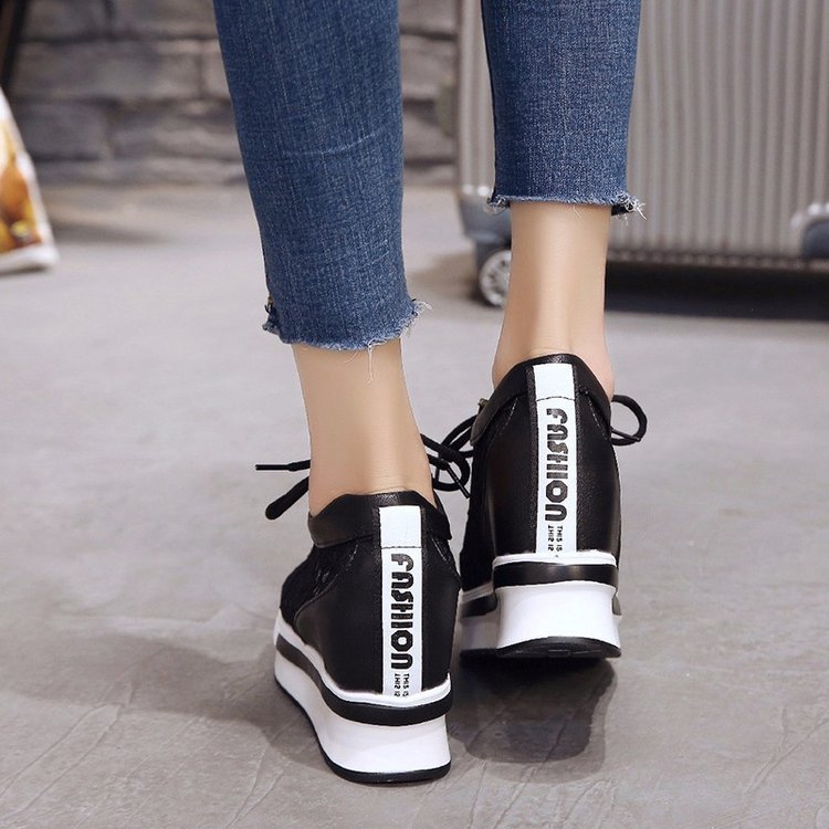 Wongn Wongn White Shoes Women's Shoes Fashion Lace Breathable Lace Inside The Increased Casual Women's Shoes Sports Shoes Tide