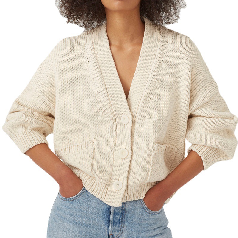 Wongn Wongn / Winter New Sweater Women's Long Sleeve Pocket Single Breasted V-Neck Knit Cardigan
