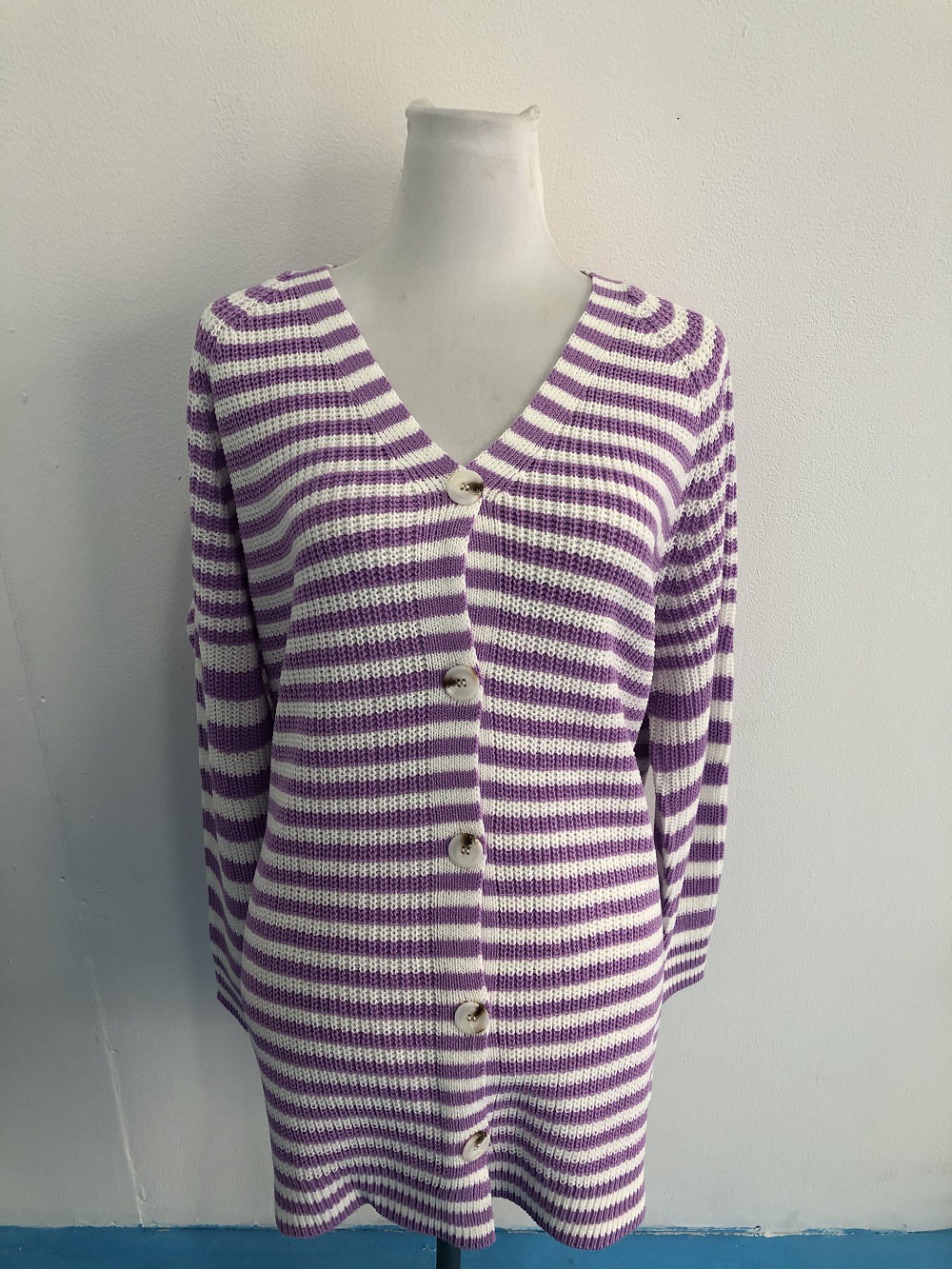 Wongn Wongn Women's Knit Cardigan Button Loose Sweater Long Sleeve Striped Fashion Women's Autumn And Winter Coat Outside