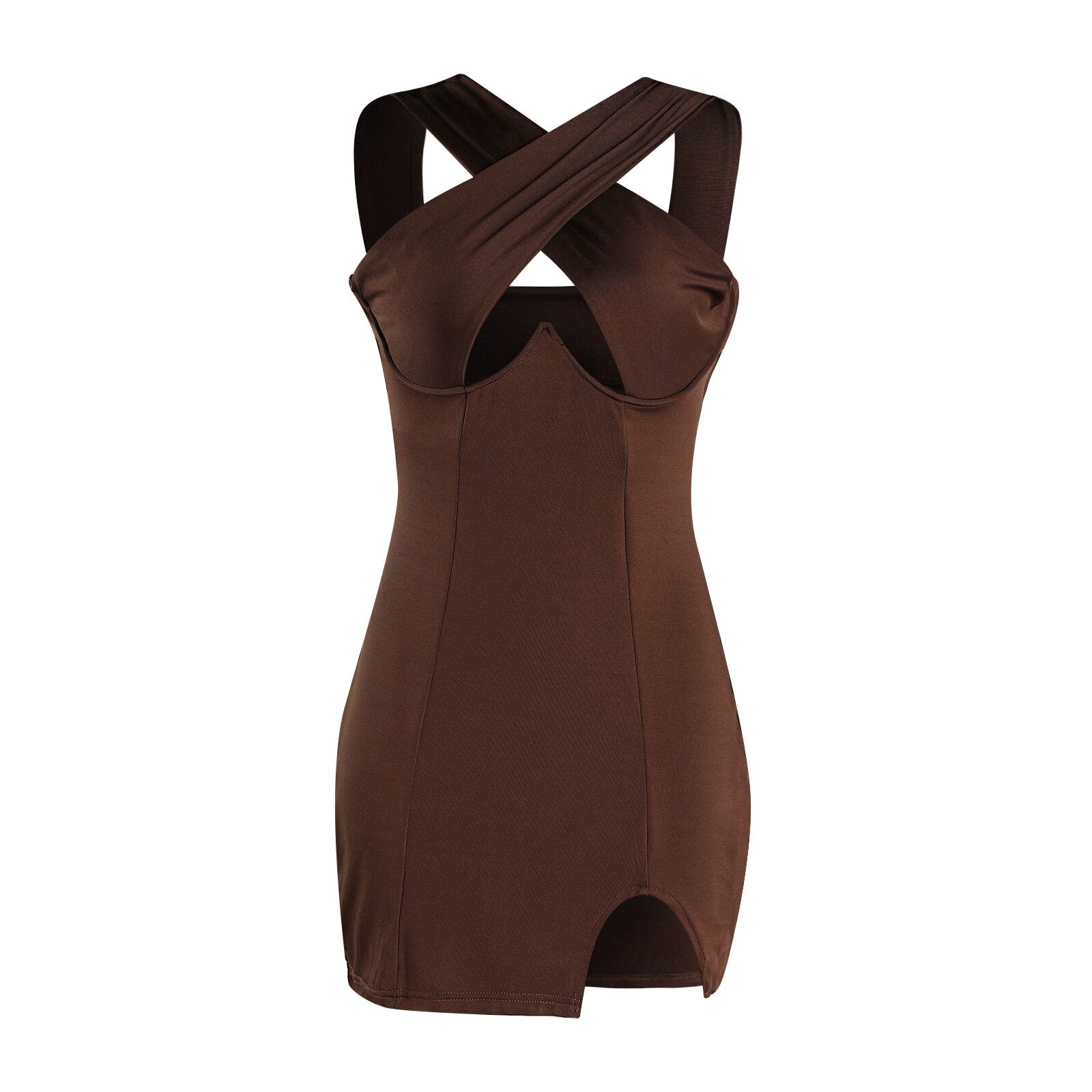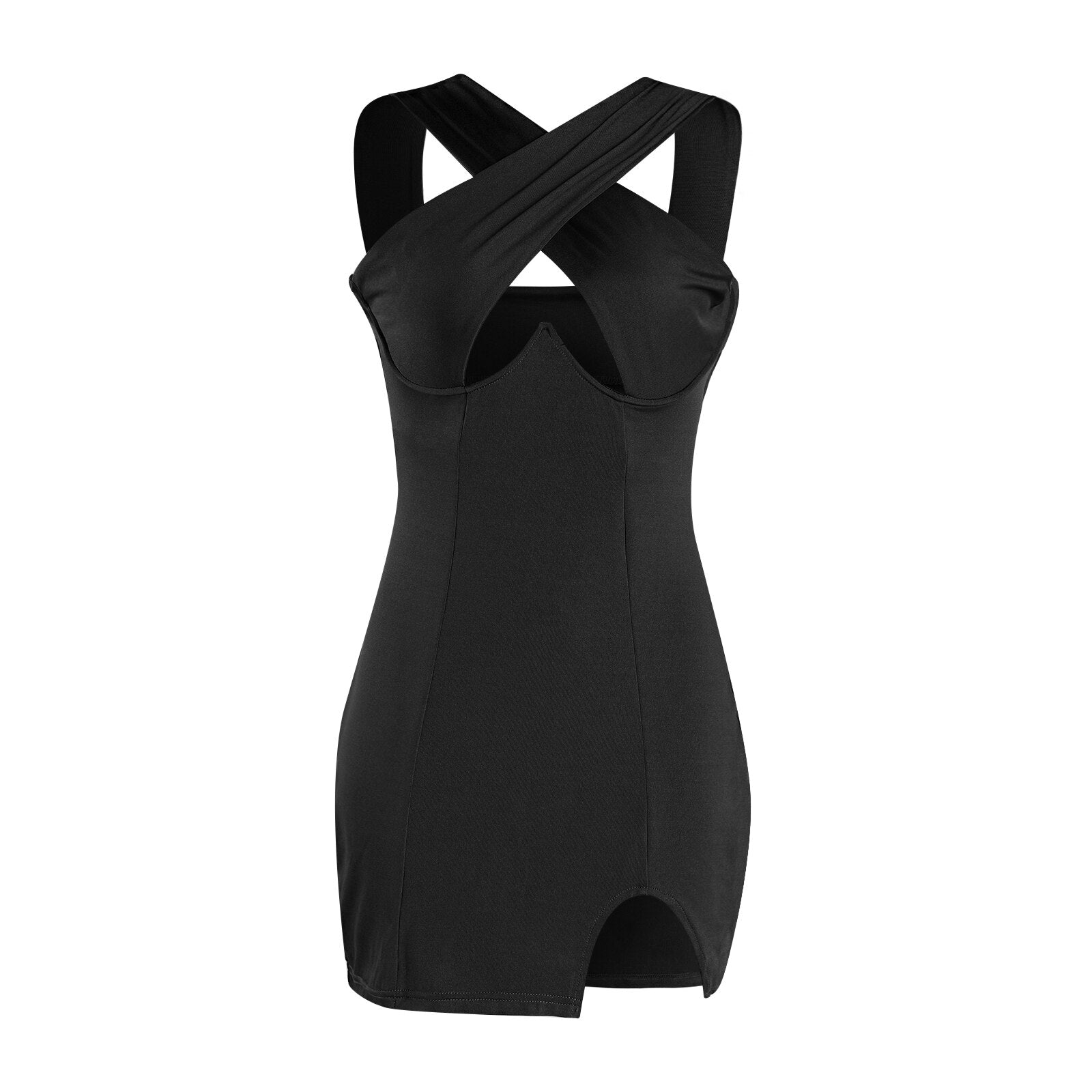 wsevypo Sexy Women Cutout Cross Halter Wrapped Dress Chic Printted Sexy Hollow Chest Skinny Sheath Dress Summer Party Clubwear