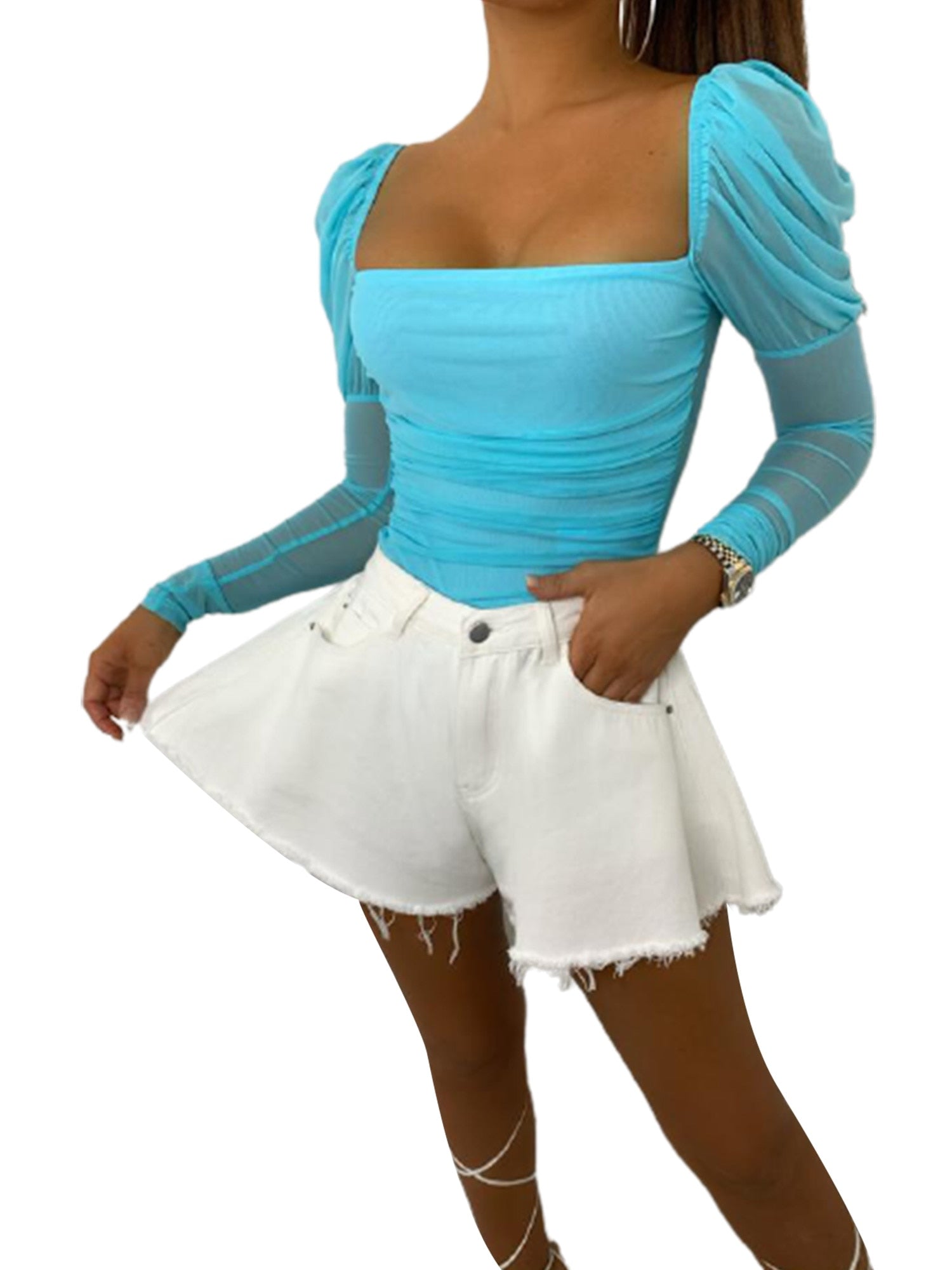 wsevypo Women Wide Leg Shorts Summer Fashion Solid Color Mid Waist Denim Flared Shorts Party Streetwear Loose Ripped Bottoms
